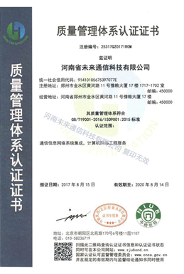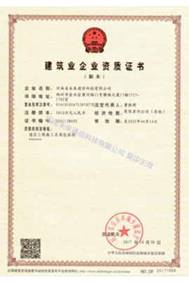 公司成立于2008年,注冊資金5010萬,具有通信工程施工總承包叁級、通信信息網(wǎng)絡(luò)系統(tǒng)集成甲級資質(zhì),是質(zhì)量、環(huán)境、職業(yè)健康安全“三標(biāo)一體”的認(rèn)證單位。